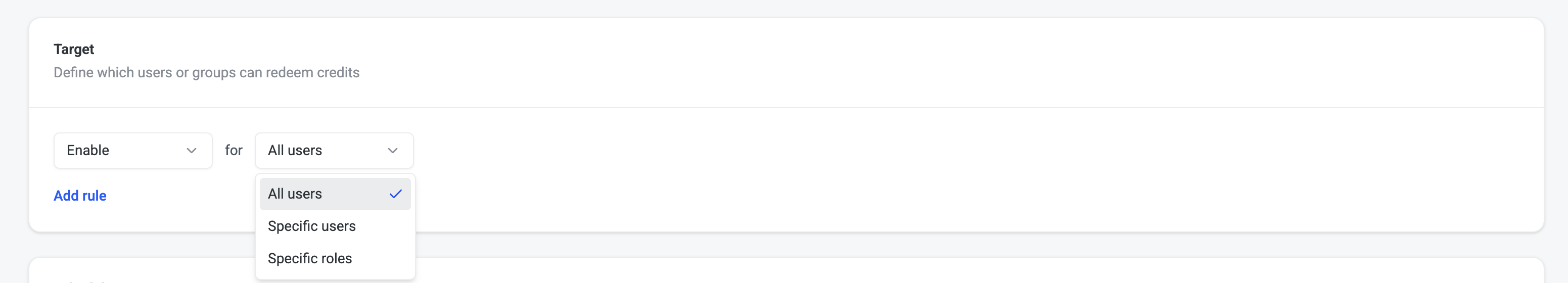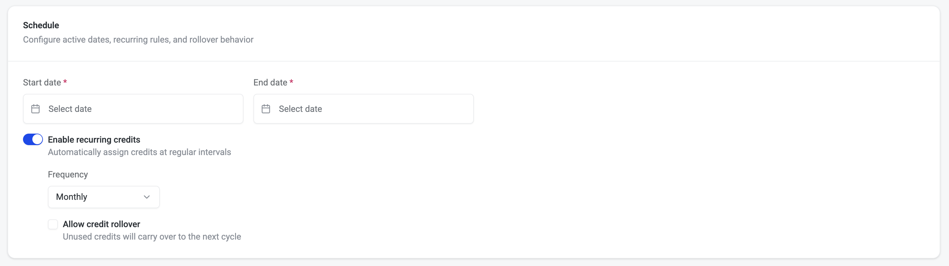 Enable allow credit rollover if unused credits should carry forward to the next period (otherwise, it’s use-it-or-lose-it)