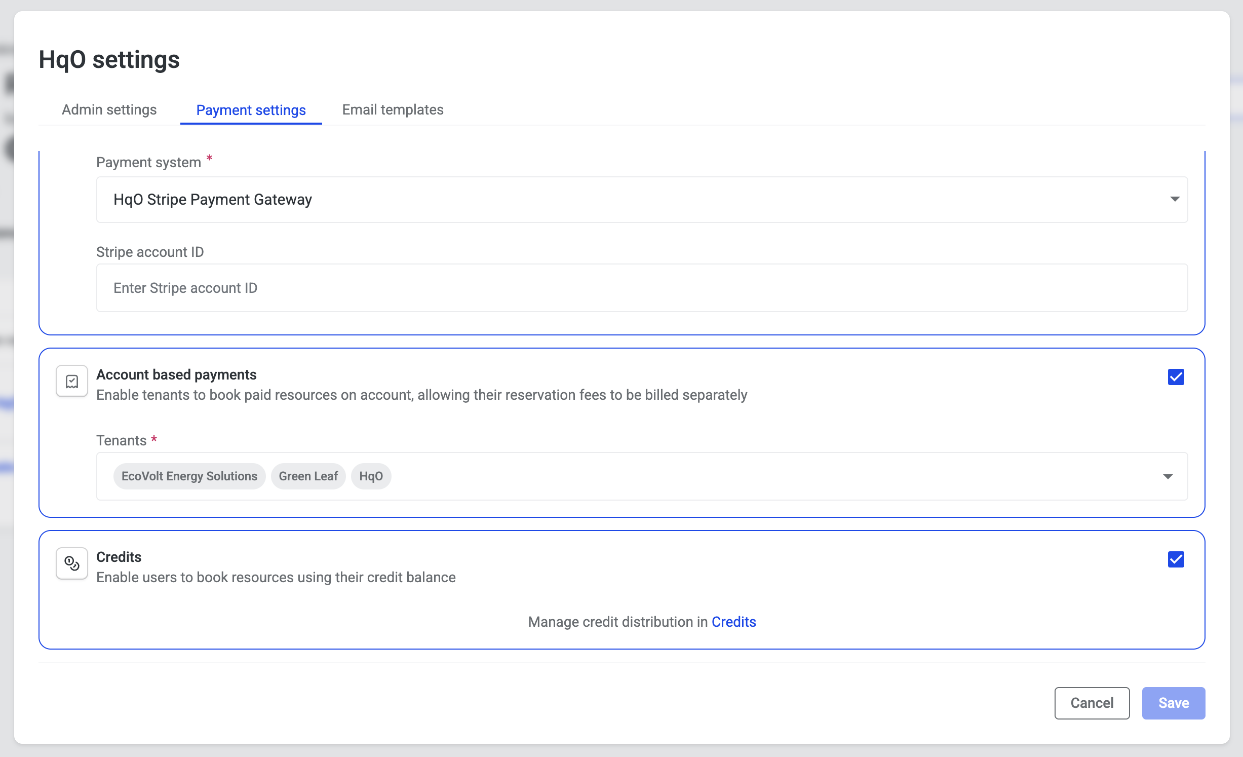 Note: If cross-building booking is enabled for the tenant, you’ll see an option to enable credits for cross-building use.
