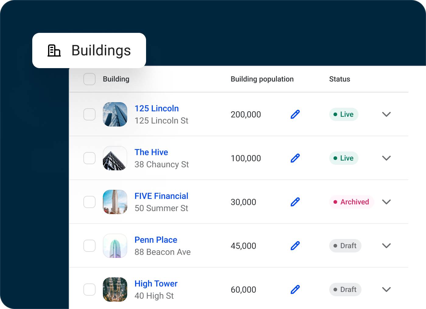 Managing your portfolio will be more streamlined and efficient than ever. With advanced search capabilities and a clear, organized view, finding and updating building details will soon be faster and easier than ever. This tool is designed to simplify building management, providing a smoother and more intuitive experience.