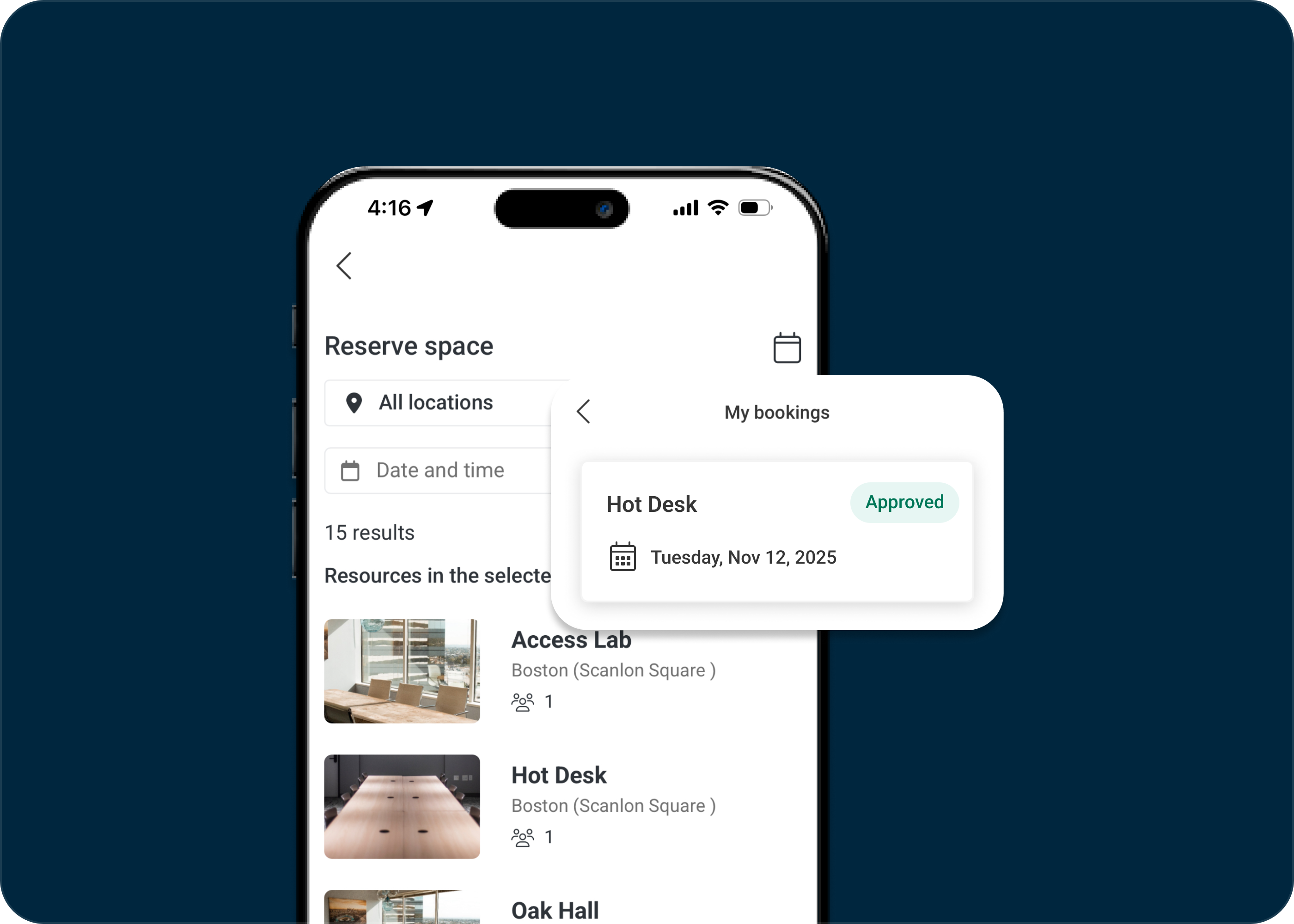 Easily discover and reserve resources in HqO! Users now land directly on the resource list—no need to click through filters first. You are still able to refine your search using filters, and the "My Bookings" button lets you quickly access your upcoming reservations.