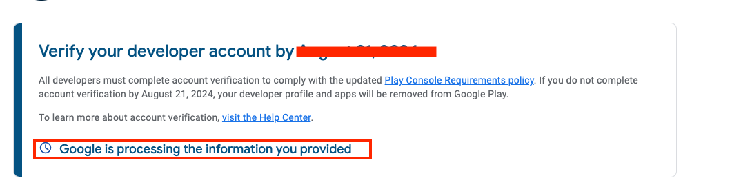 This guide is designed to assist you in completing the Google Identification process, a mandatory step for the Account Holder. Each developer account has a specified deadline for completing the verification process. Google allows approximately a month from the verification date to finalize the process. Kindly access your Google Play Console to ascertain your verification deadline.