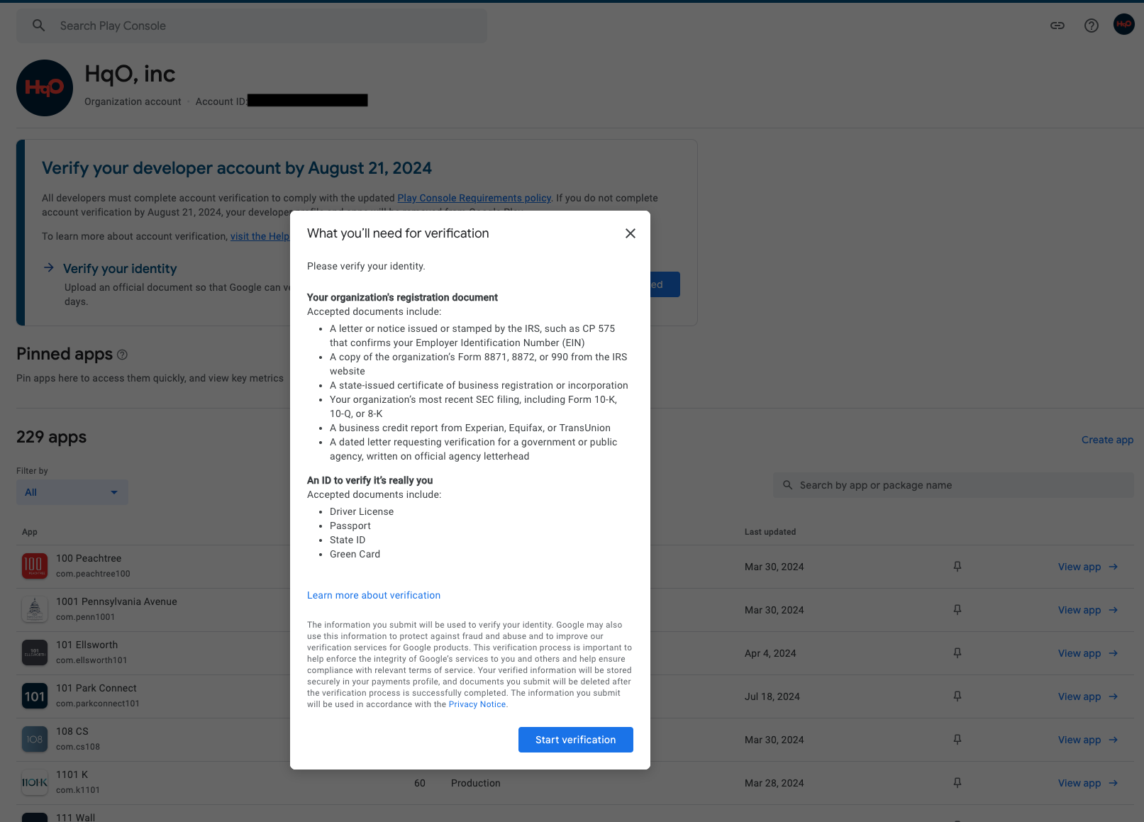 All developers are required to undergo the account verification process to adhere to the updated Play Console Requirements policy.