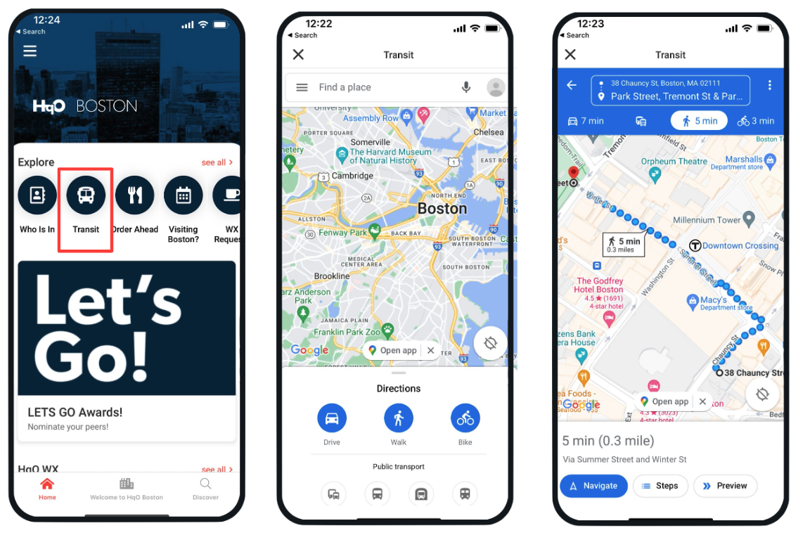 By including your Google Maps in the HqO experience, your end users will be able to access key mobility options for the city around them.