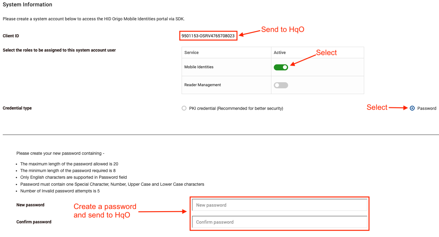 In the Select the roles to be assigned to this system account user section - select Mobile Identities