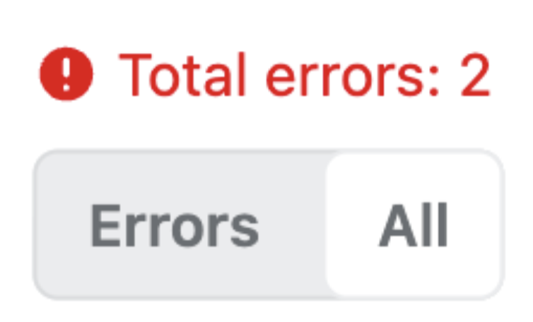 You can hover over the error icon in each row to see a description of what’s causing the error.