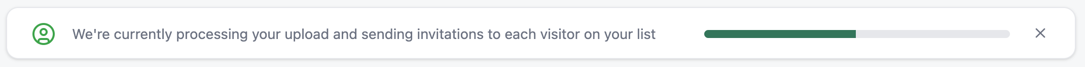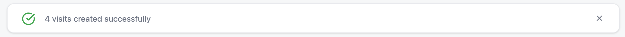 While the system processes your visits, you will see the loading bar update on the top of the screen. Once this has been completed, you will receive a confirmation letting you know your visits were successfully created, and you’ll see them reflected immediately in your Visits table.