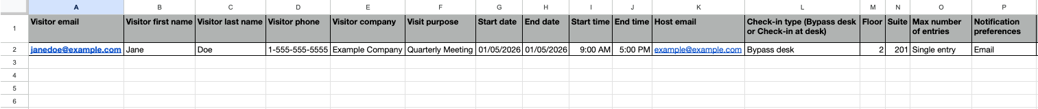 If you're uploading, download the visitor template