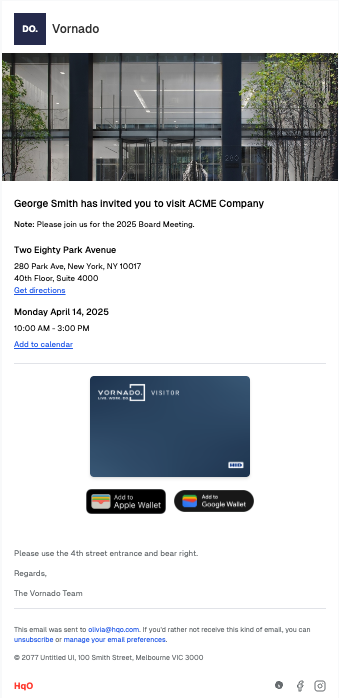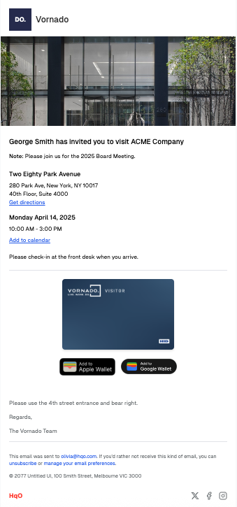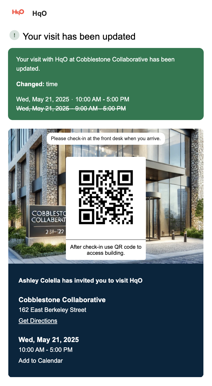 Host Edits Date/Time of Visit | Visitor receives Visitor Invitation Modified - Date or Time | N/A |