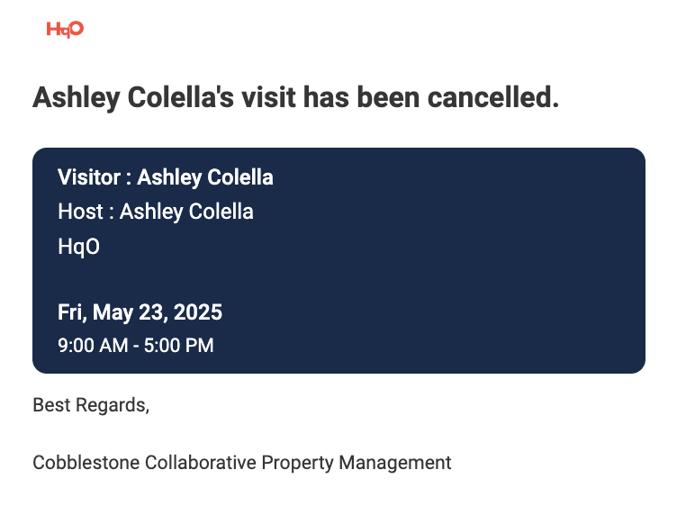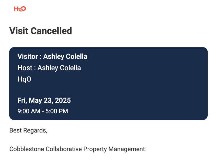 Host or Building cancels visit | Visitor Invitation Cancelled | Visitor Invitation Cancelled |