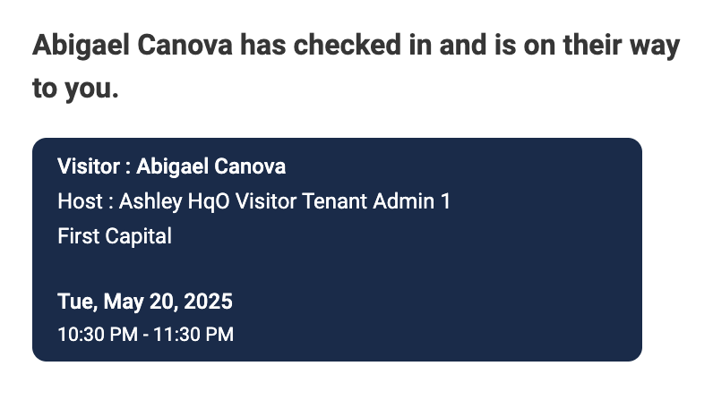 Host Invites Visitor | Visitor receives Visitor Invitation | Visitor Invitation Confirmation |