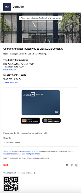 Visitor bypasses desk and scans QR | N/A | Visitor Checked In |