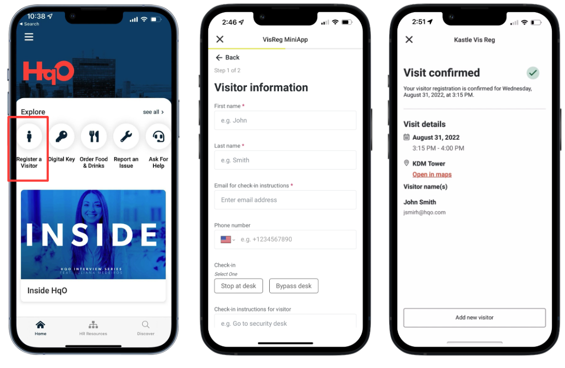 If you do not have Visitor Registration included in your HqO Contract, or you are interested in learning more about Visitor Registration options, please reach out to your HqO Customer Success Manager to learn more.