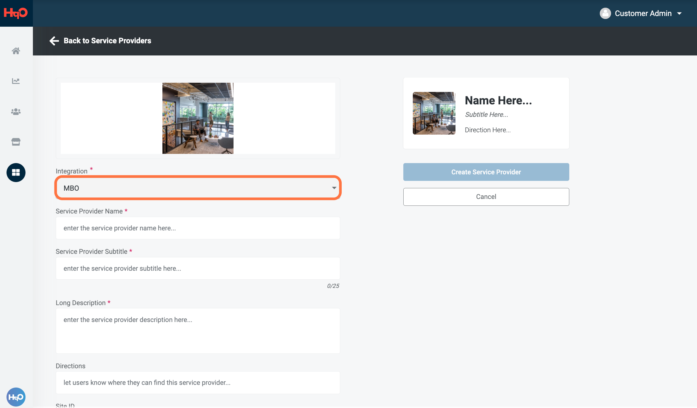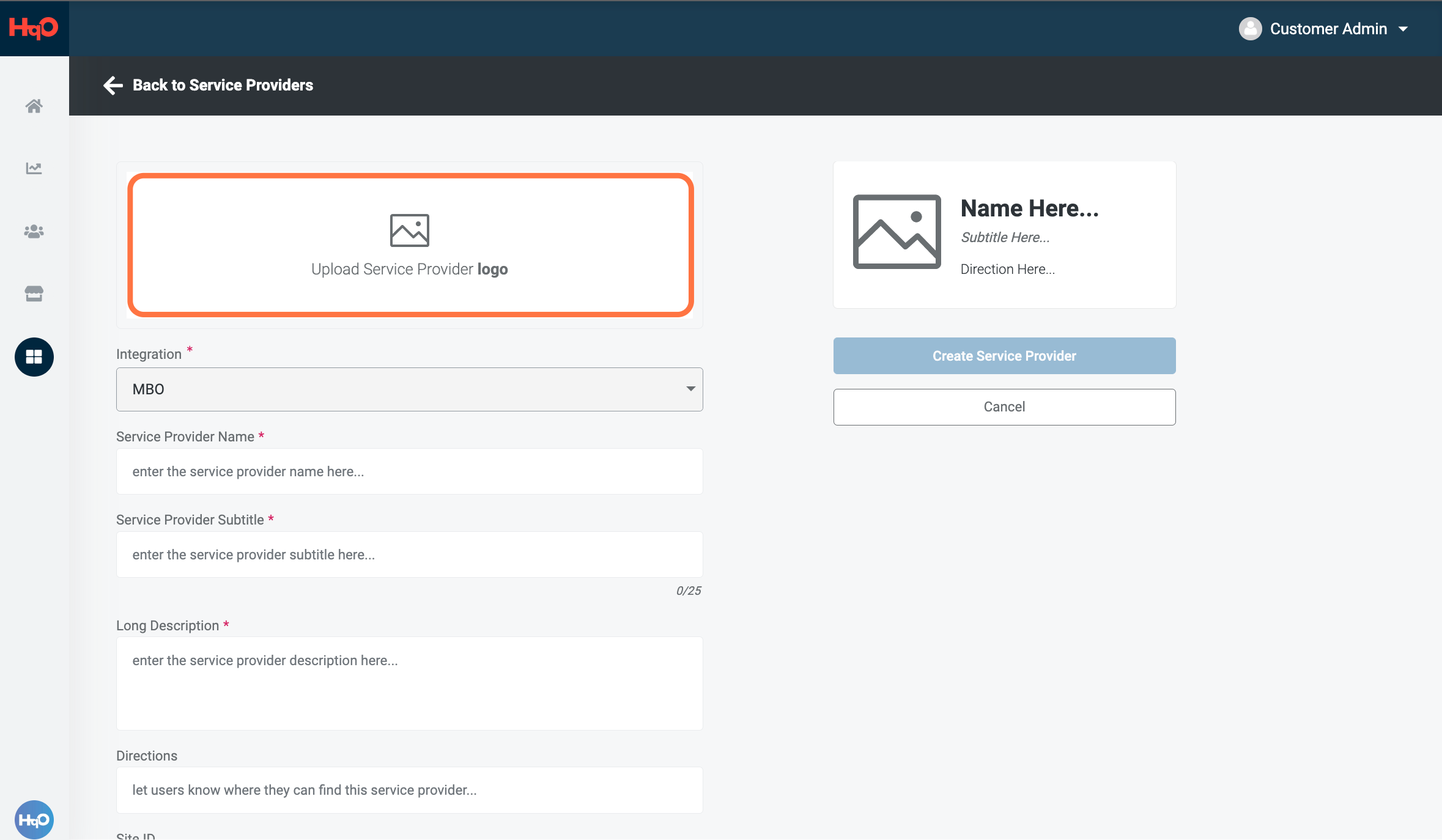 Step Three: Upload a service provider image