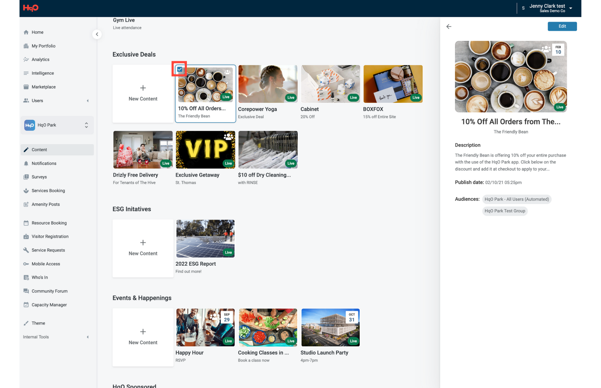 Step 2: Navigate to either the homescreen tab (“Homescreen”) or the spotlight tab (“Deals & Perks”) at the top of the Content Creator page to find the piece of content you’d like to move.