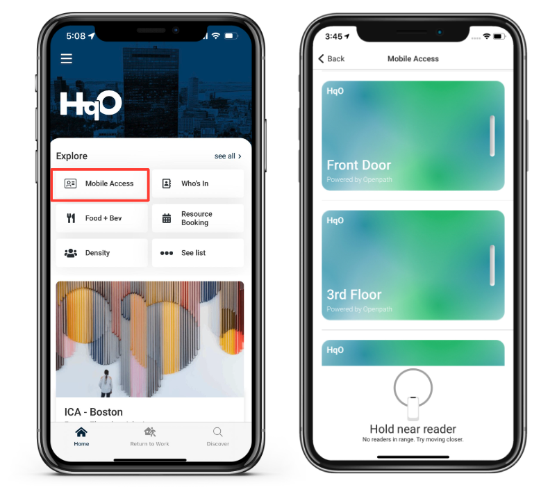 Hqo has an integration available with Openpath, which allows mobile access from the HqO app to Openpath readers.