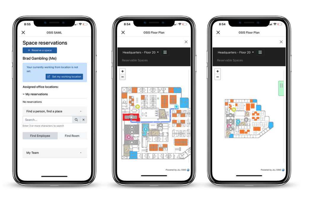 OSIS is a JLL space management platform that supports: floor plans, desk booking, check in and check out solutions. The OSIS portal drives wayfinding applications and kiosks to help end users find peers and spaces. The end users workflows will mirror their existing OSIS experience. HqO utilizes a SAML integration with OSIS, which will allow end users to bypass a re-authentication step when using the feature.