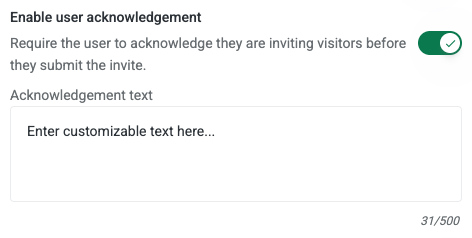 Require the user to acknowledge they are inviting visitors before they submit the invite.