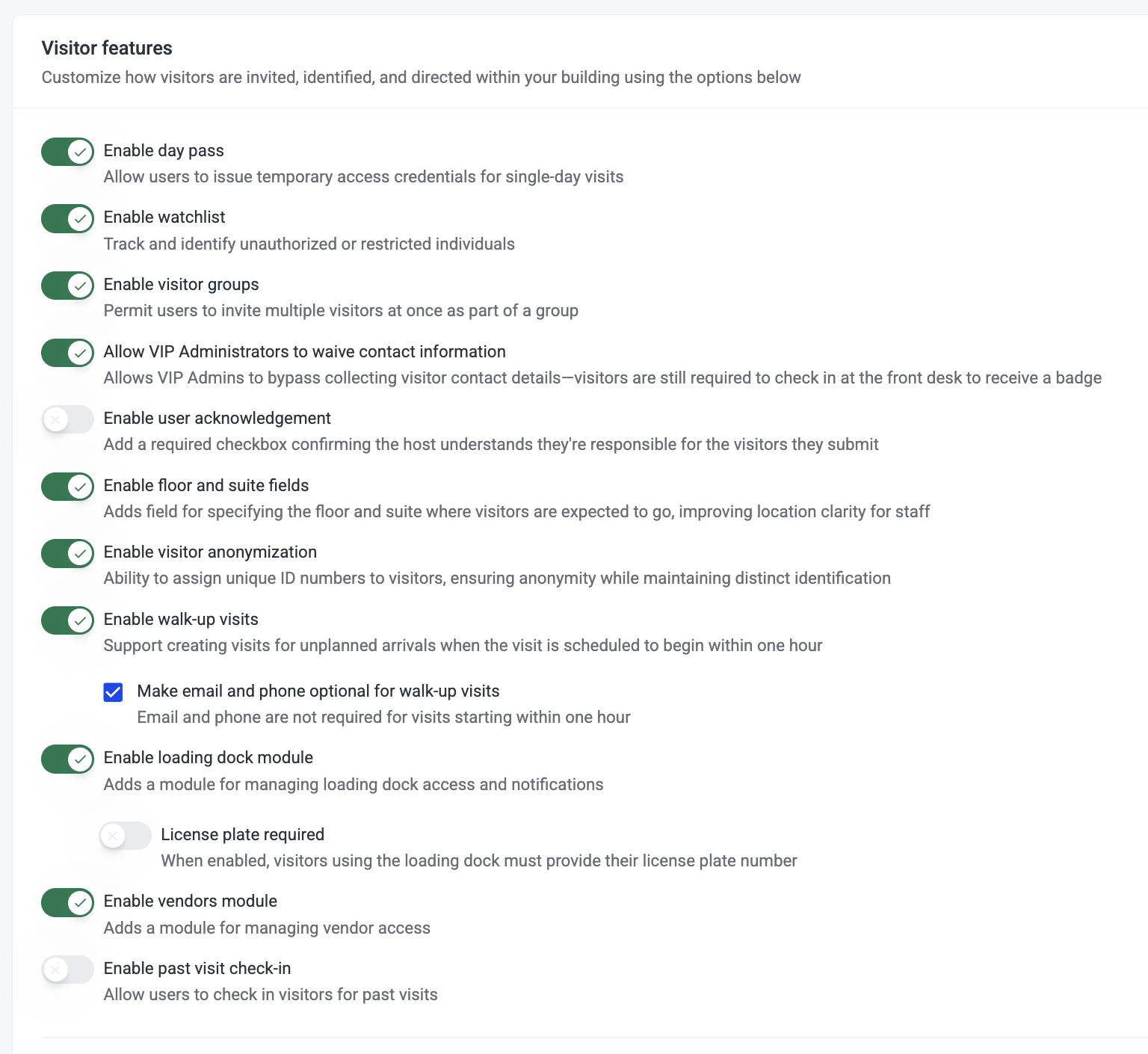 Note: If all property staff hold the Security Admin role, walk-up is not required for visit creation — but may still be useful if you want to make contact fields optional for same-day visits.