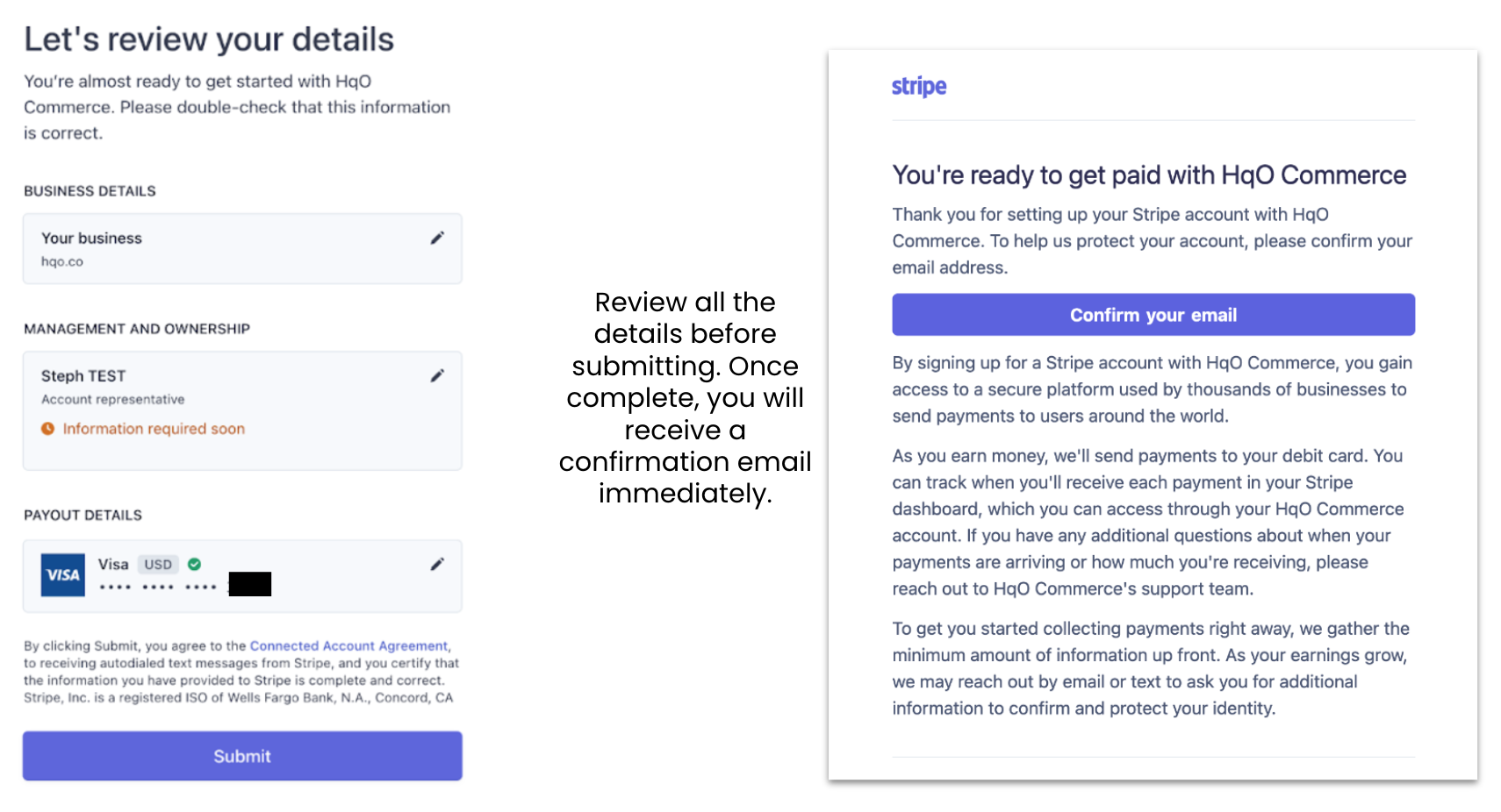 Funds pass to HqO’s Stripe account and HqO will pass the funds to customer’s Stripe Express account