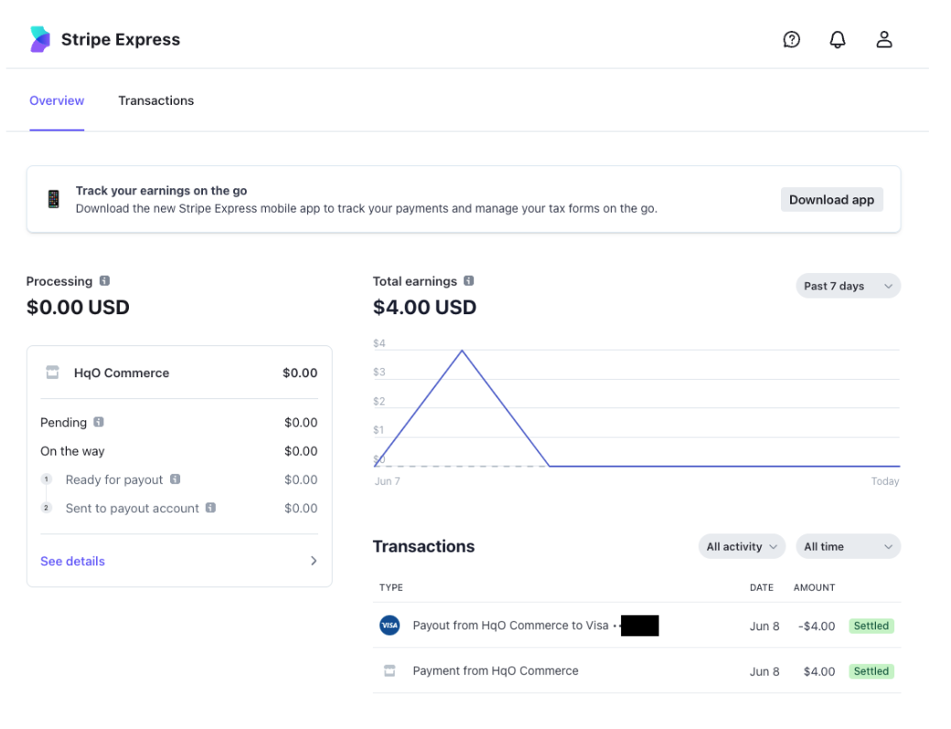 Stripe Express is an online platform that is used to track and manage payments from a connected Stripe account. Your Stripe Express account will be connected with HqO’s Stripe Connect account and this is how you will transfer funds from a service in your HqO app to your bank account.