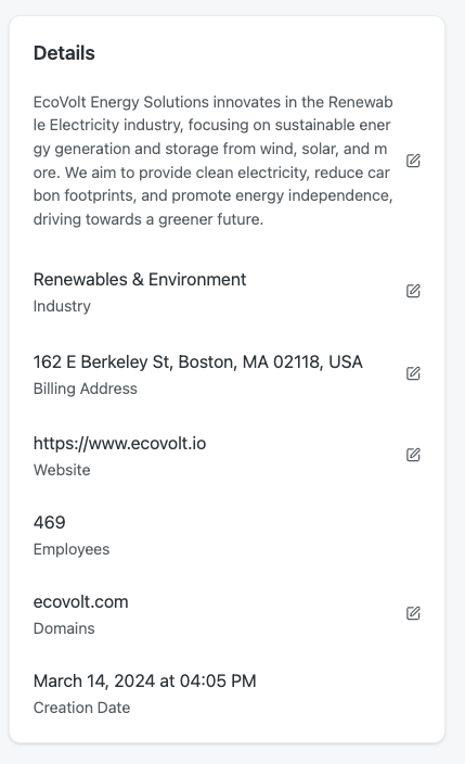 Inline Editing: All four cards feature the pencil icon—click to edit information in real-time without leaving the page.