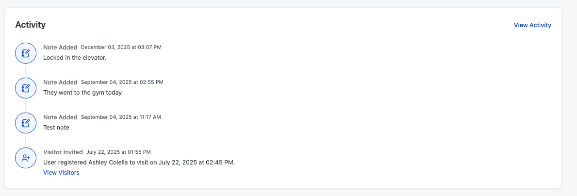 Notes are the way that property and asset teams can keep track of critical information and interactions, and it be seen across their entire portfolio user teams. Things like “this person likes to be called Michael not Mike” or “this person likes their coffee black” might be helpful, experience based information that can be entered into notes.