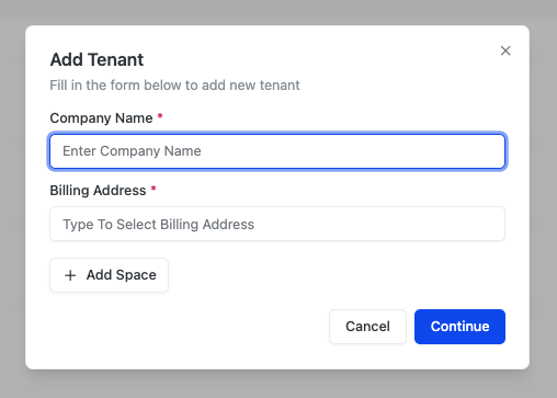 Click any tenant name in the table to open the Tenant Detail Page, where you can view and manage comprehensive information about that specific tenant relationship.