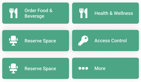 Utility buttons are created through XM Admin and are viewable on both HqO apps and HqO tenant web instances. These buttons can be configured by icon, color, and shape to match your branding.
